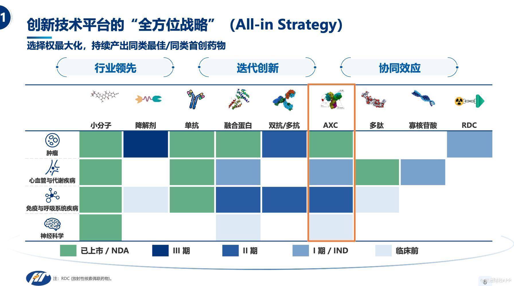 自1月12日起,在这场全球创新药行业“年会”上,一个话题继续被热议:中国创新药大规模BD是昙花一现的浪潮,还是足以重塑全球研发格局的持久力量?恒瑞用一份成绩单给出了答案。在JPM舞台上,恒瑞展示的研发底盘足够厚重:公司已围绕肿瘤、心血管与代谢、免疫与呼吸、神经科学四大核心治疗领域,布局了超过100个新分子实体(NME),正在开展超过400项临床试验。更关键的是,这套庞大的研发体系是依托于平台化、系统化且持续迭代的创新引擎。恒瑞的“全方位”技术平台战略(All-in Strategy),涵盖了所有主要治疗模式,包括小分子、大分子(如抗体)、AXC、降解剂、多肽等。